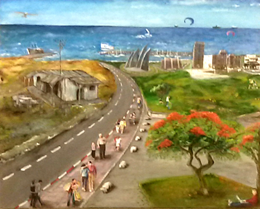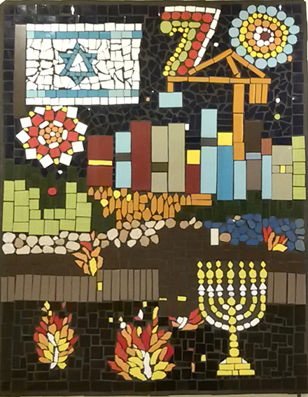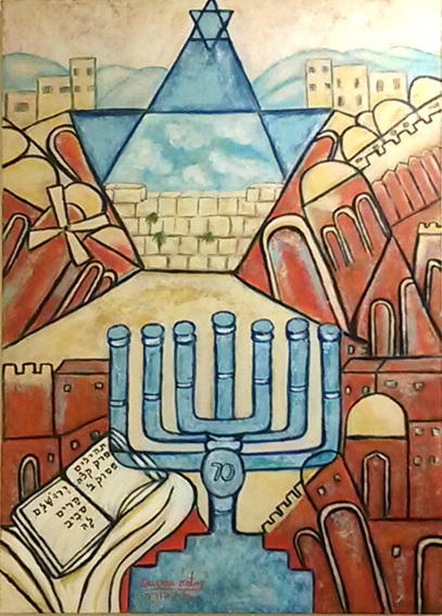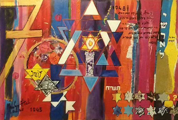 היצירות בתערוכה מאוד צבעוניות ומופיעים בהם מוטיבים יהודיים וישראליים רבים, כמו למשל מגן דוד, מנורה, דגל ישראל ועוד. בשלל הציורים והתמונות המוצגים בתערוכה ניתן לראות סצנות תנ"כיות, נופים ארצישראליים, מקומות שונים בארץ, מאורעות היסטוריים אשר התרחשו בישראל, אנשים החיים במדינה, אישים ישראלים מפורסמים ובעצם כל מציג חושף בפנינו איך מדינת ישראל משתקפת בעולמו של האמן.